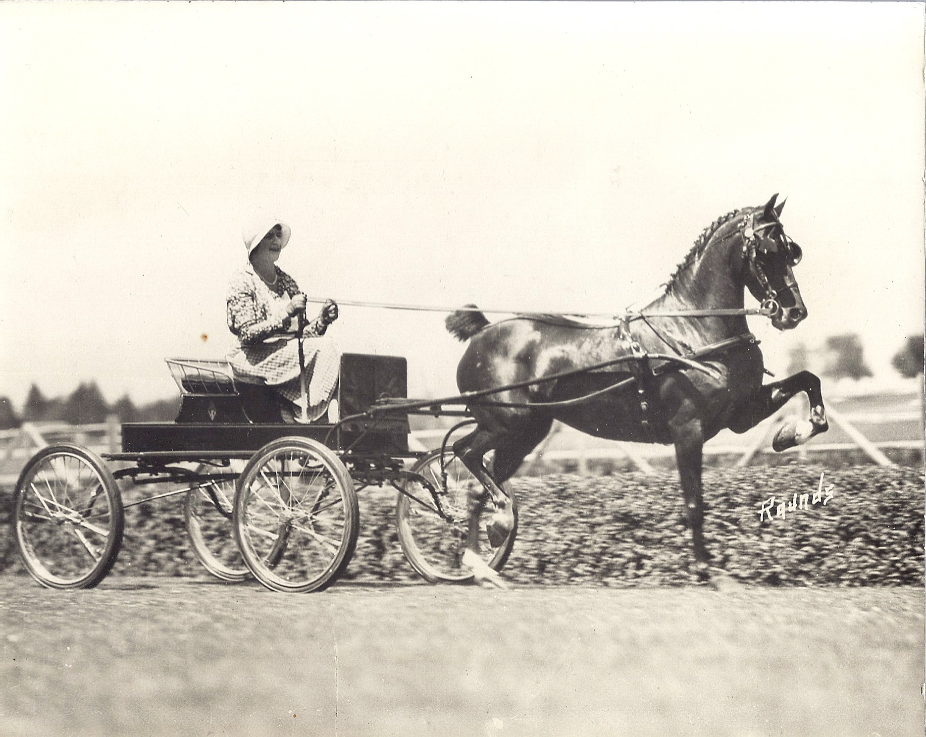 Mrs. Ruth Frank driving a carriage pulled by Aloma