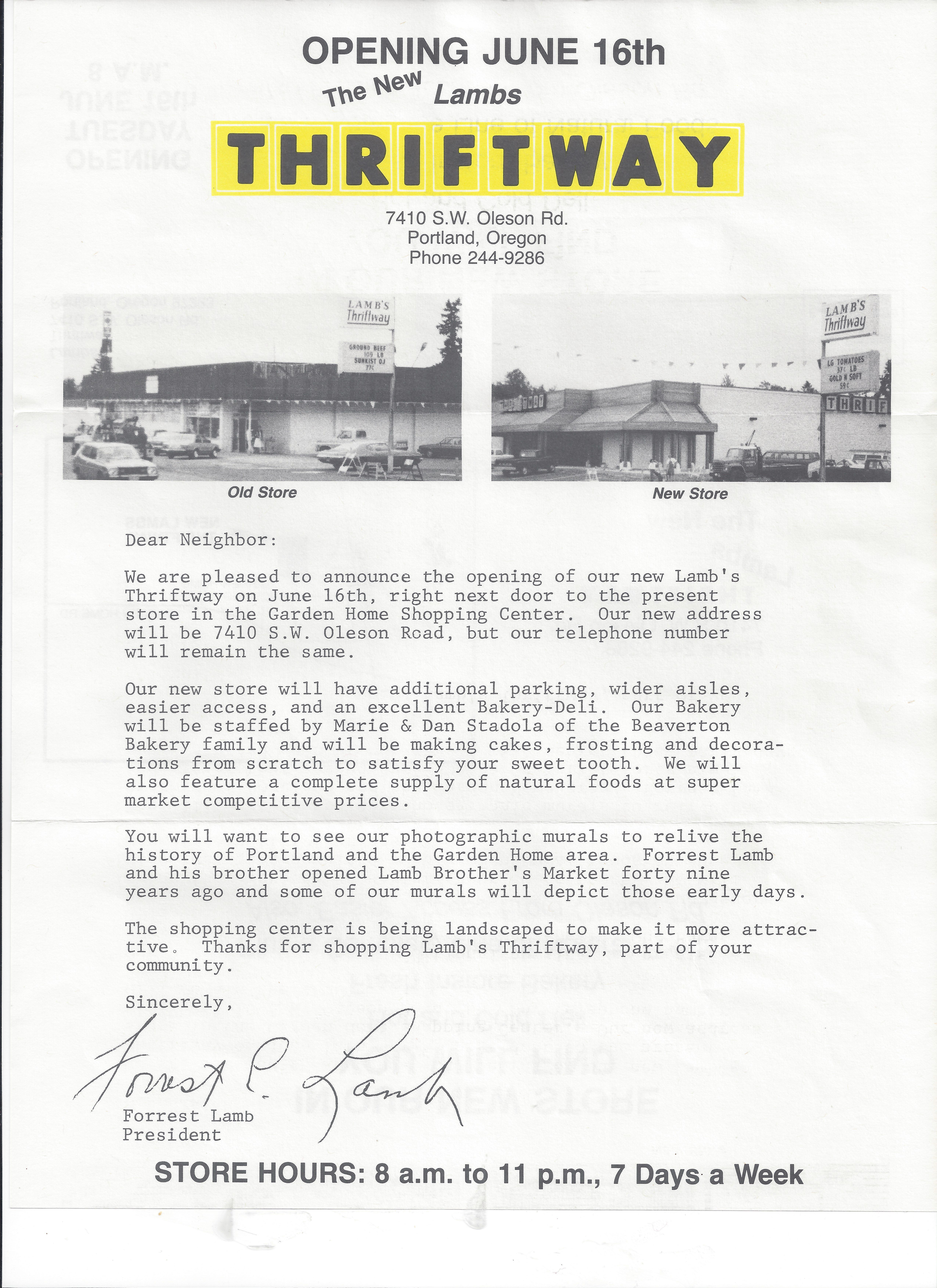 ← Colin Lamb and the history of Lamb’s Garden Home Thriftway
