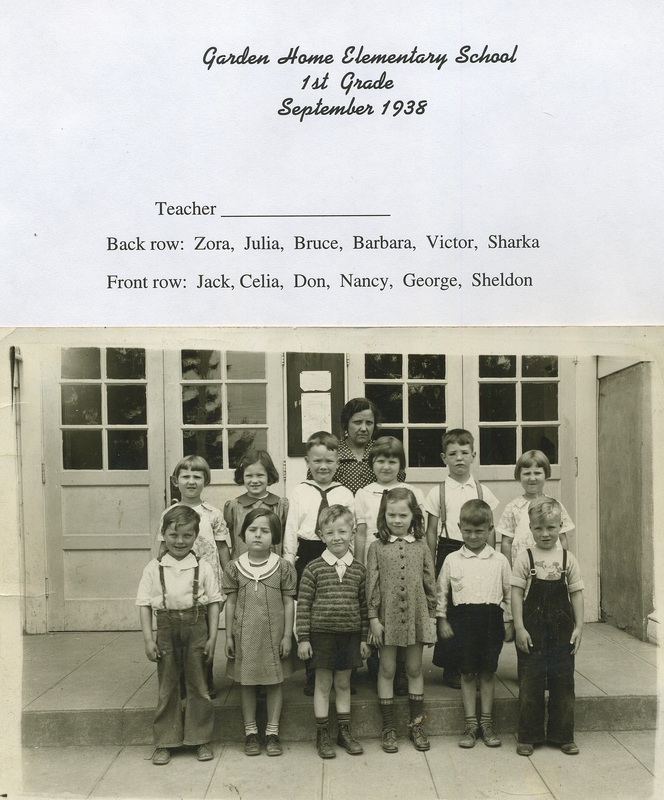 1938 Garden Home School 1st grade. Zora, Sharka Becvar on each end of 2nd row.