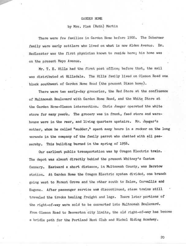 Ruth Martin history of Garden Home, page 1