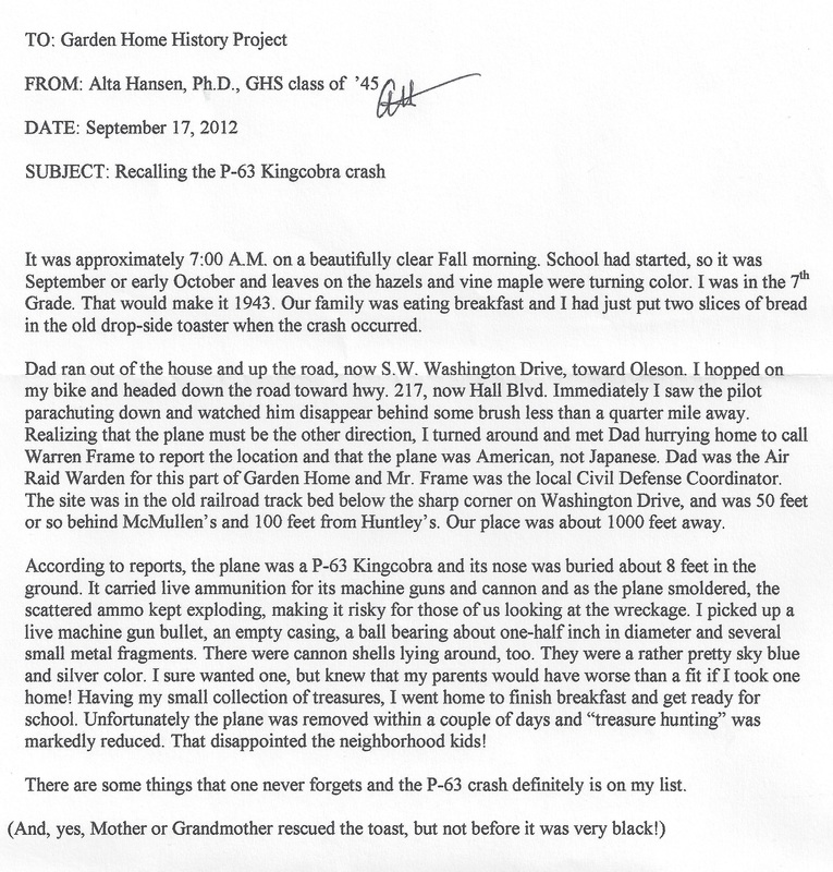 ← 1944 Crash of Lt. Robert Strong’s P-63 Kingcobra fighter plane