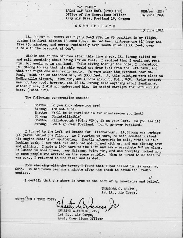 1944 Crash of Lt. Robert Strong’s P-63 Kingcobra fighter plane