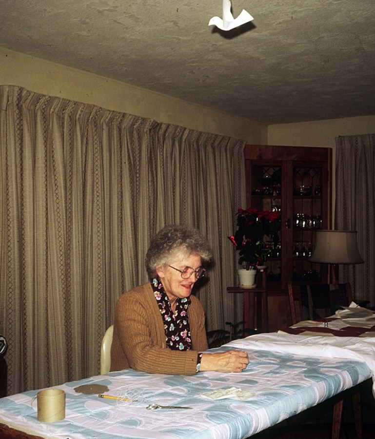 Thelma Shirley working on a quilt