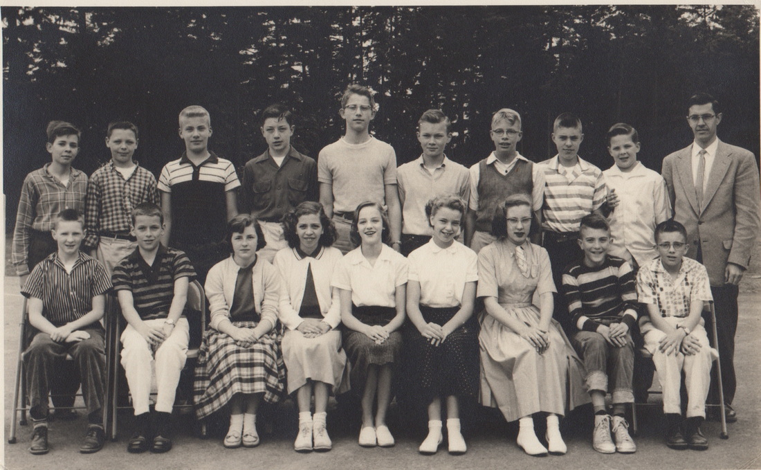 1957 Garden Home School, 7th grade. Dick Vonada, 2nd from right, first row.