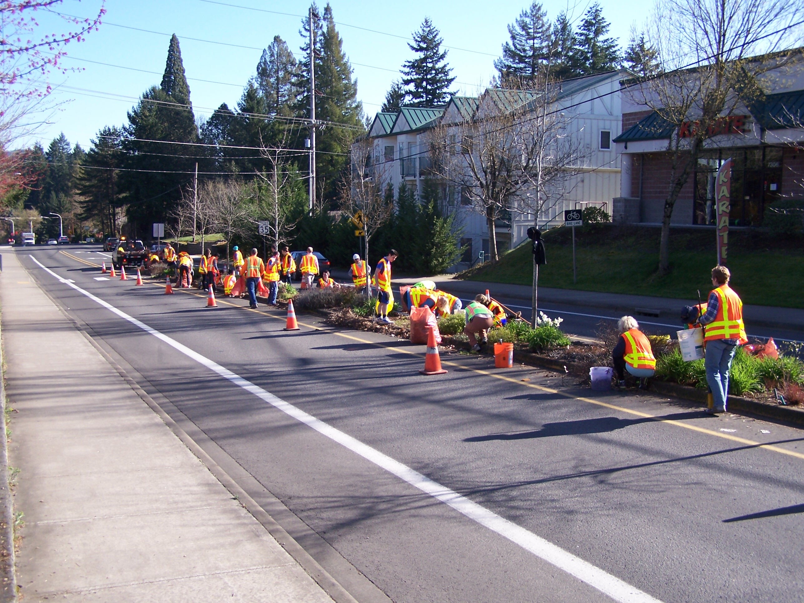 Garden Home Gardeners working on SW Oleson Rd near Rec Center (looking north), 2015