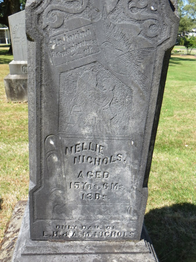 Tombstone of Nellie Nichols, only daughter of Lumen H and Ann M Nichols