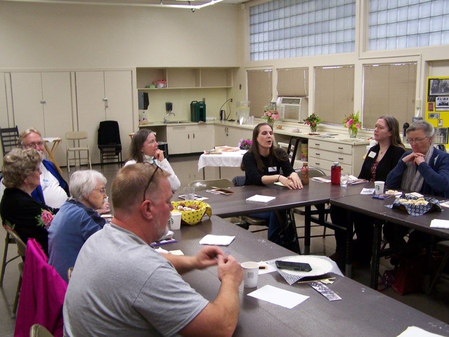 Liza Schade speaking (in black) – History Society Roundtable May 18, 2018