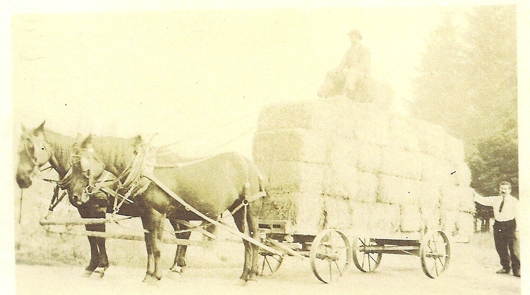 Wagon with stacked square hay bales