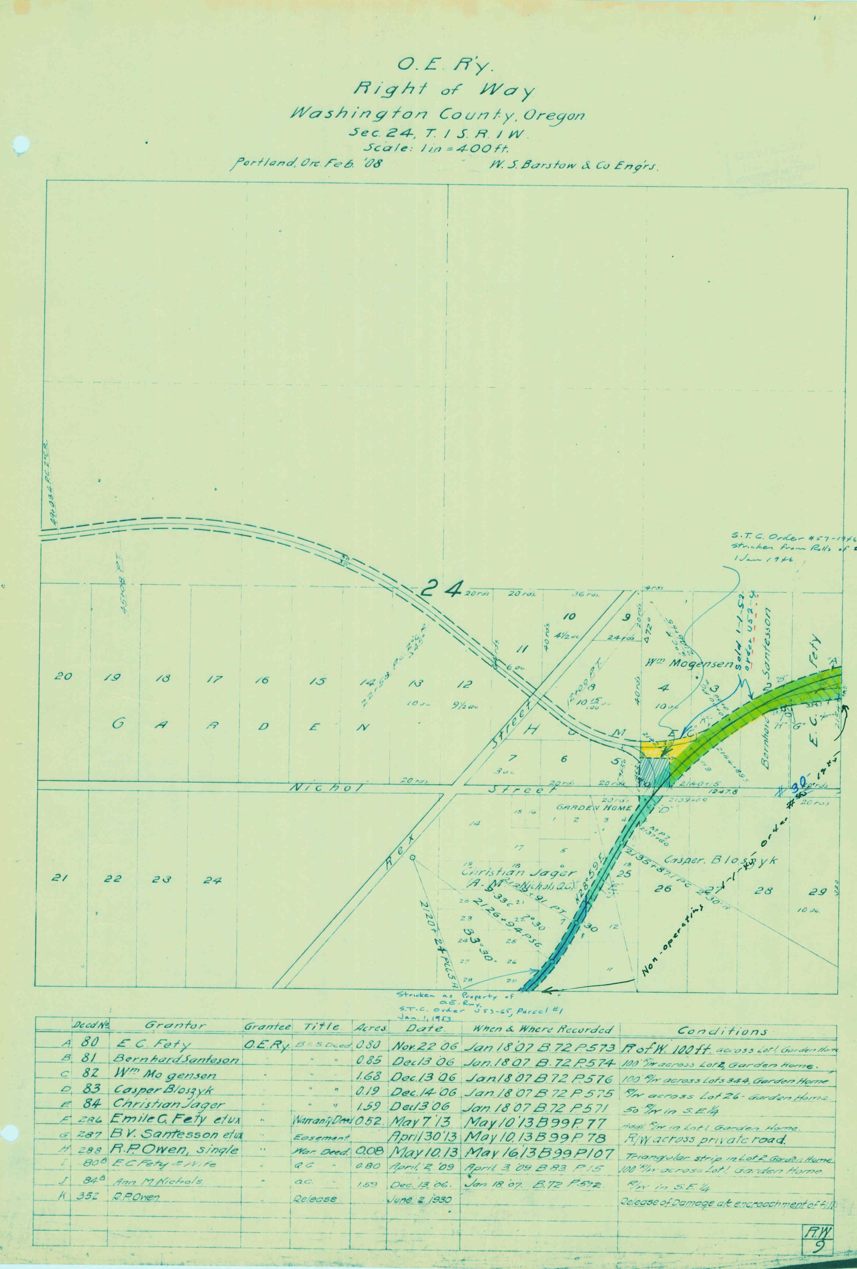 1908 OER Right of Way Map – Garden Home Junction – OER Right of Way Map – Metzger to Greenberg – T1SR1WSect24