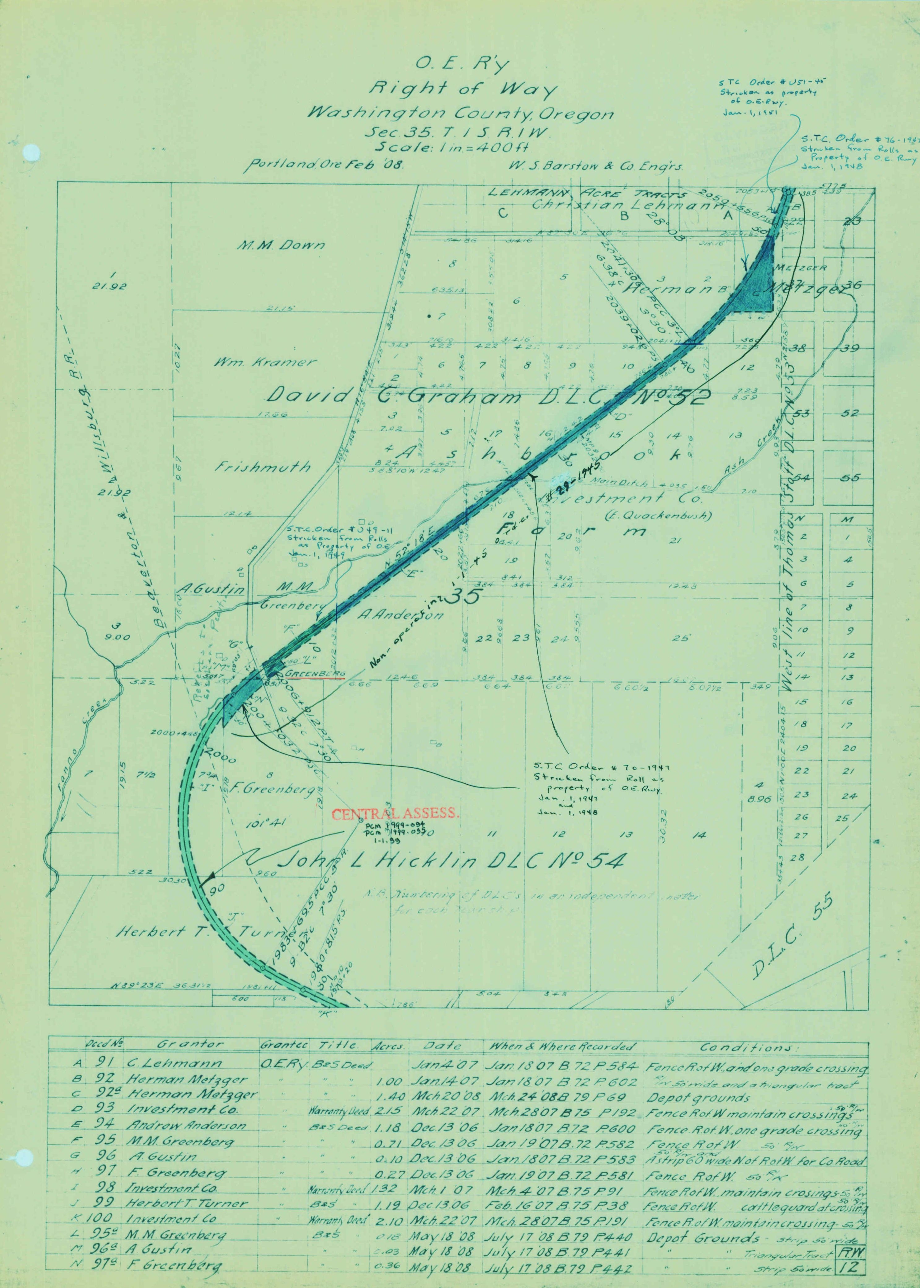 1908 OER Right of Way Map – Metzger to Greenberg – T1SR1WSect35