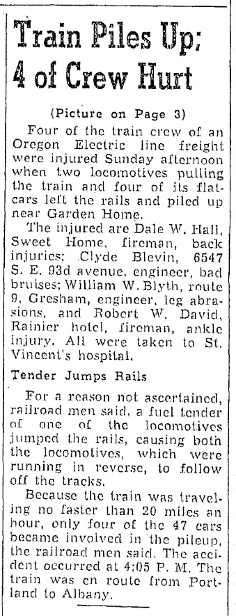 Oregonian Monday Oct 20, 1941 – train derailment detail