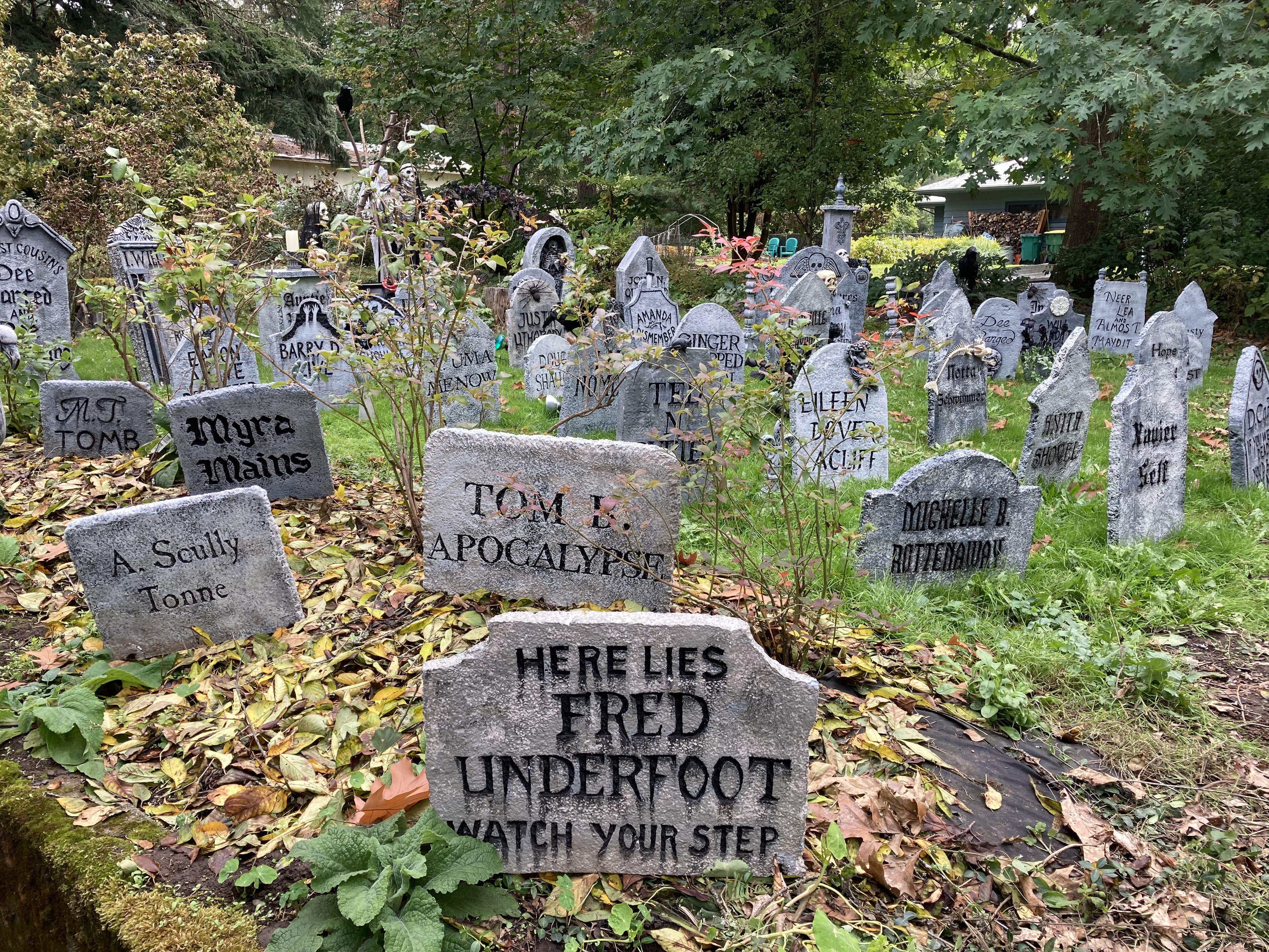 Halloween Garden Home Graveyard on SW 82nd – Here lies Fred Underfoot (2021)