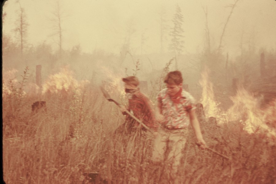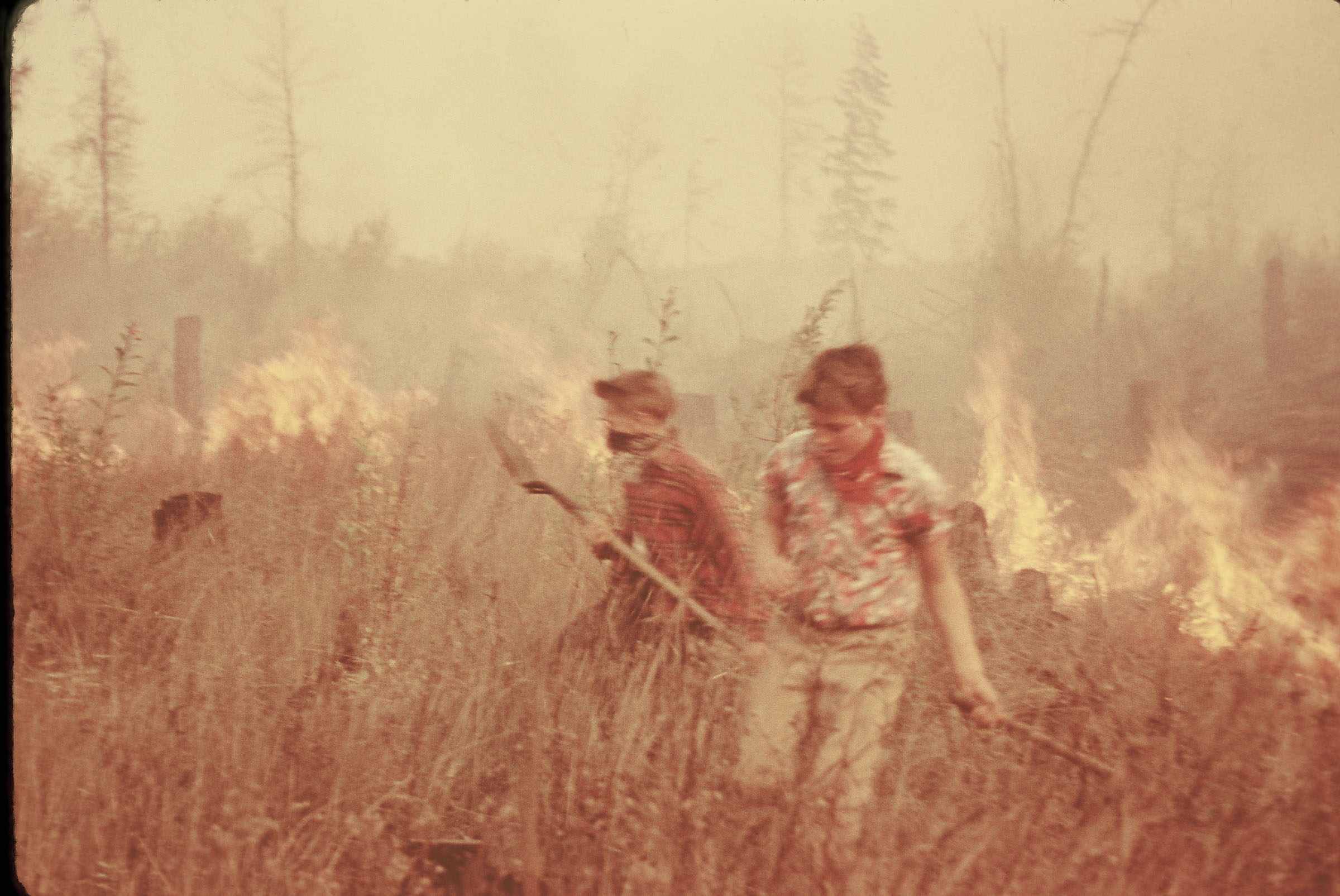 PHOTO NO. 181: Local boys do their part in extinguishing the same fire on King Street. The fire was contained by firefighters from the Beaverton Rural Fire Protection District. (Photograph by Ernie Metcalfe)